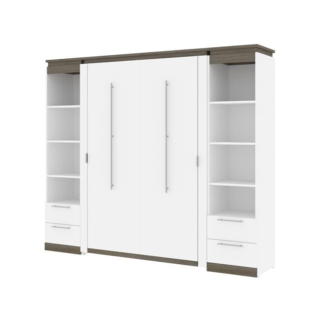 Bestar 116895 000017 98 99 In Orion Full Size Murphy Bed 2 Narrow Shelving Units With Drawers 44 White Walnut Gray Walmart Com